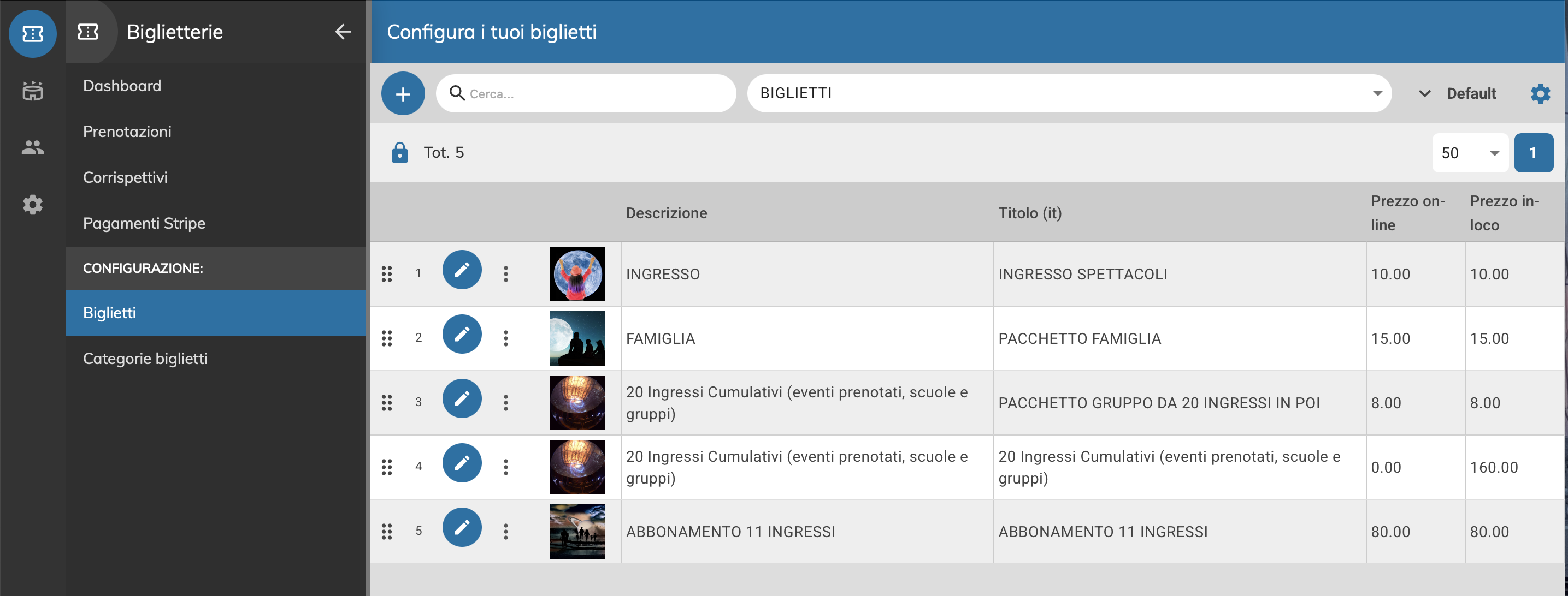 Una piattaforma completa, intuitiva e conforme agli standard SIAE, progettata per ottimizzare la biglietteria di cinema, teatri, mostre, fiere, parchi a tema, gallerie e qualsiasi evento di spettacolo o intrattenimento.