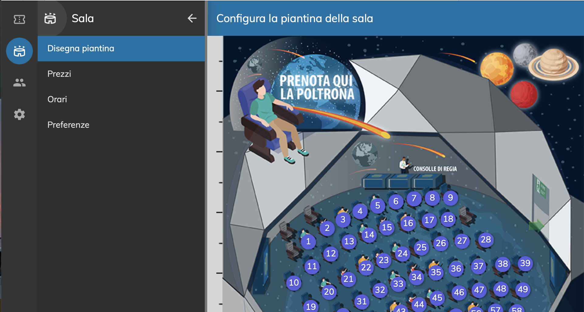 Grazie a un sistema flessibile e sempre aggiornato, My-Ticket “Movie”consente di gestire in modo centralizzato ogni aspetto del ticketing: dall’emissione dei titoli certificati SIAE alla configurazione delle mappe interattive per la disposizione dei posti, fino al monitoraggio in tempo reale delle vendite e degli accessi.